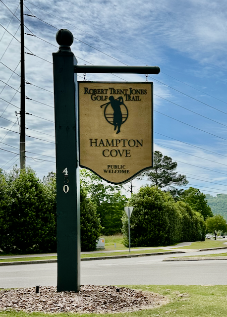 The RTJ Trail course at Hampton Cove is in here Huntsville, Alabama. This site has two 18-hole courses and a short course. I played the River course, a relatively flat course that runs near a branch of the Tennessee River. An interesting feature of this course is that there are no sand traps. However, the course is not without obstacles. Water comes into play, and 11 of the 18 holes, with many shots over the water to reach the green. Shots must be very accurate, I had the experience of landing a shot on the green with a bit of side spin only to roll off the green and into the lake. The course is carved from a wooded area, and you frequently see birds and other wildlife. The course conditions do have fairways and tees that show wear, but the greens were in good condition and fast, undulating greens